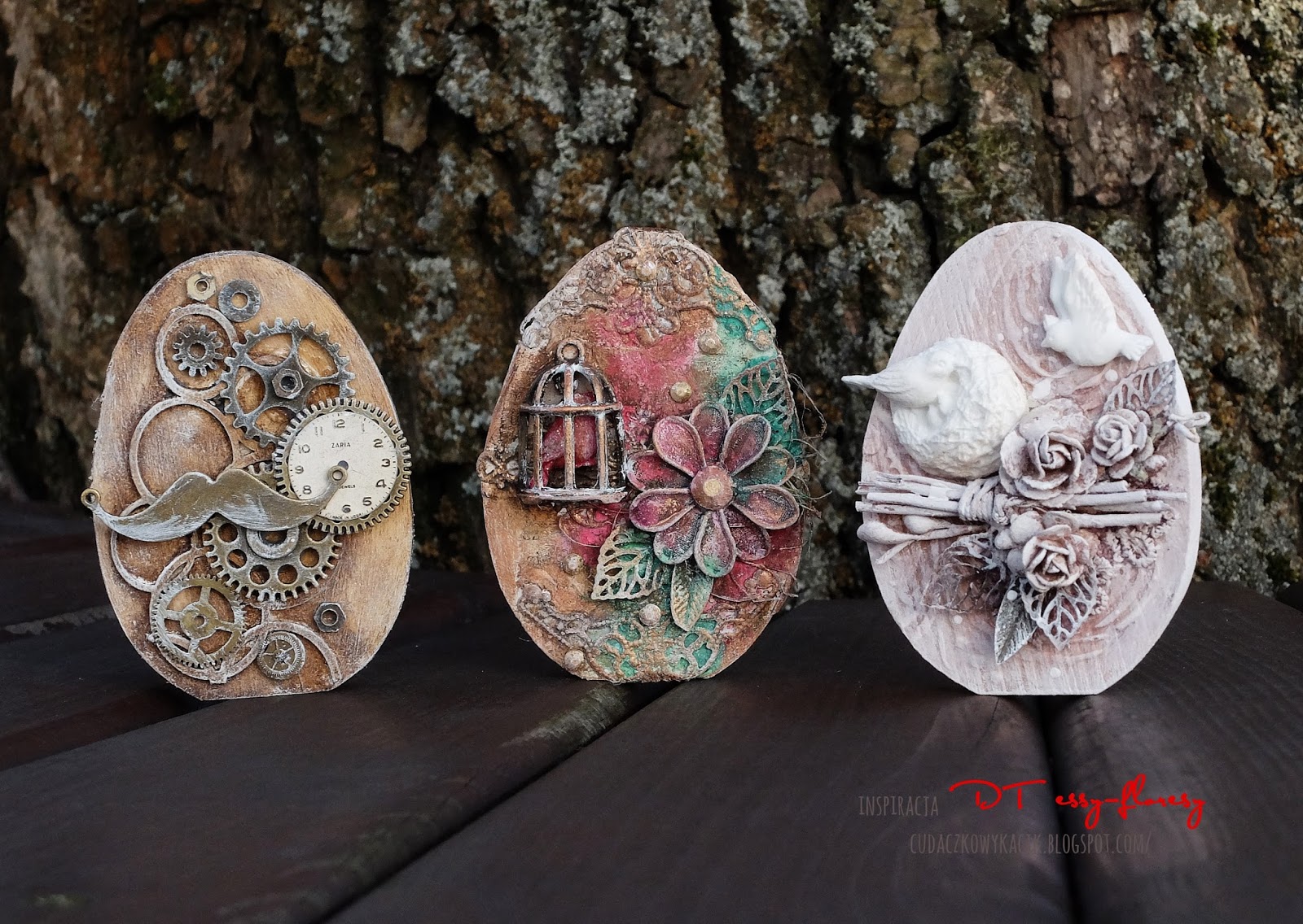 Lubicie robić własnoręczne dekoracje? Ja tak :) I dzisiaj mam coś dla Was - 3 małe drewniane wielkanocne jajka- każde w innym stylu, każde jedyne w swoim rodzaju ;) Będzie duuużo zdjęć i krótki tutorial na końcu. Po szczegóły zapraszam na Essowego bloga :)Jestem ogromnie ciekawa, które z nich podoba Wam się najbardziej...